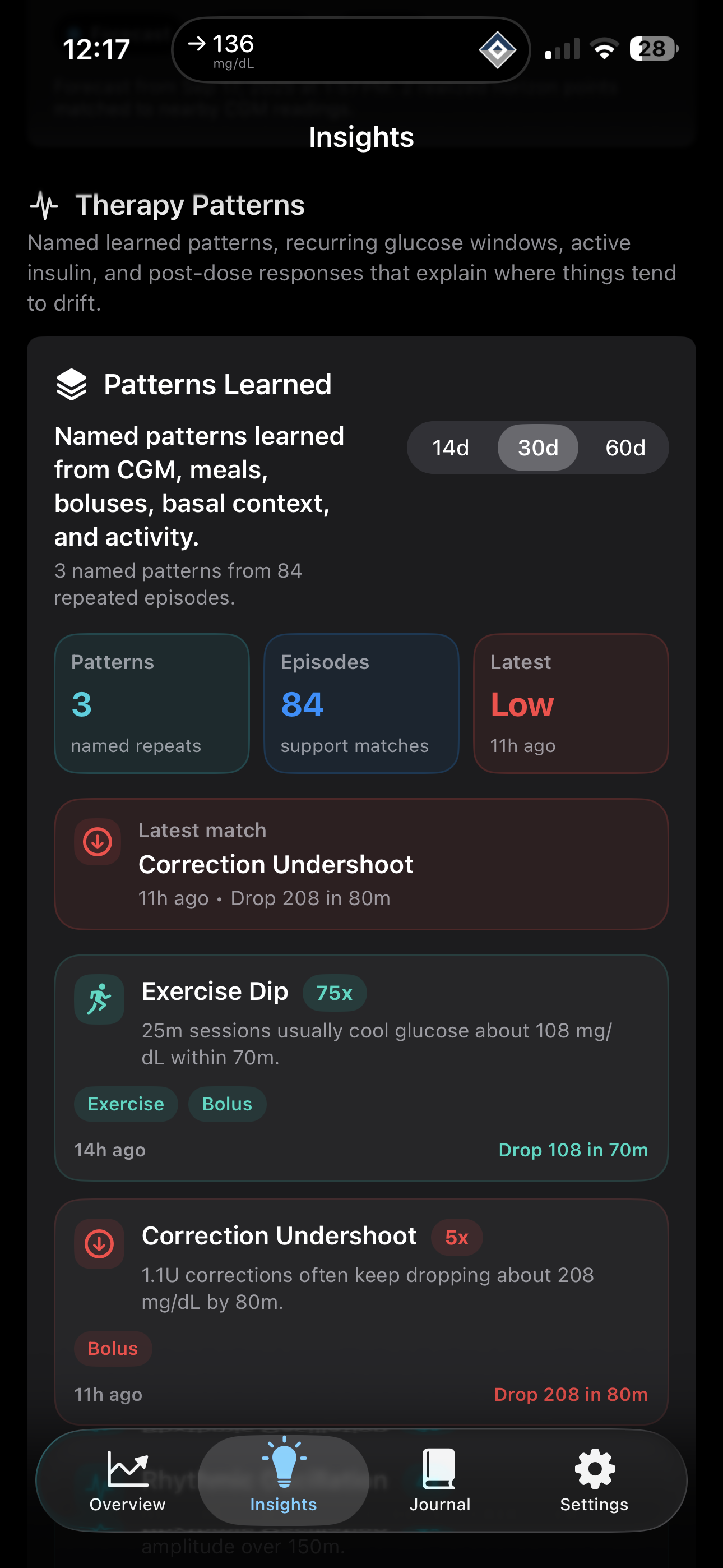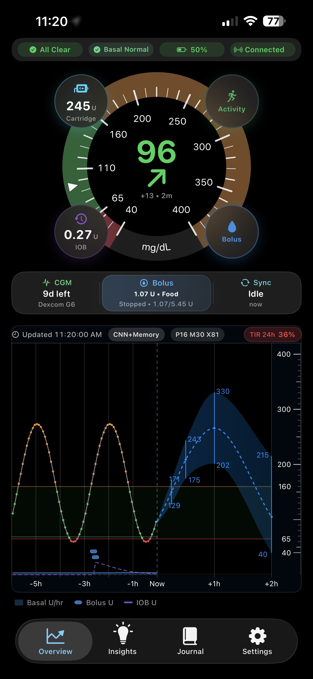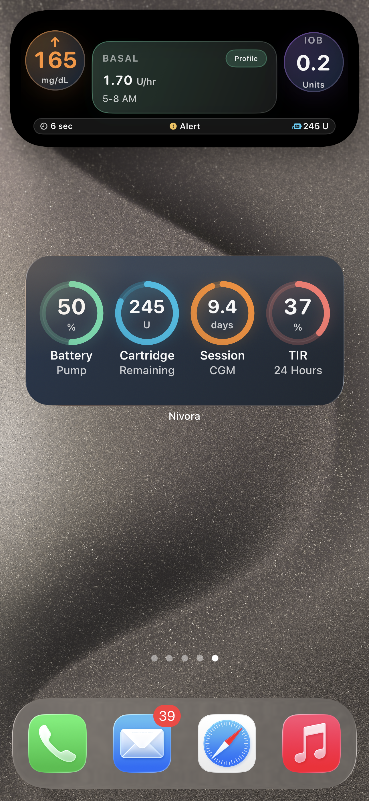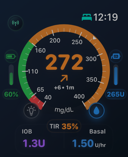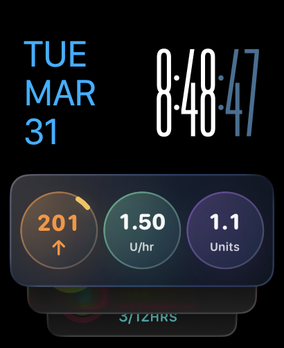 - Pulls glucose data from Dexcom Share and shows current value and trend at a glance.